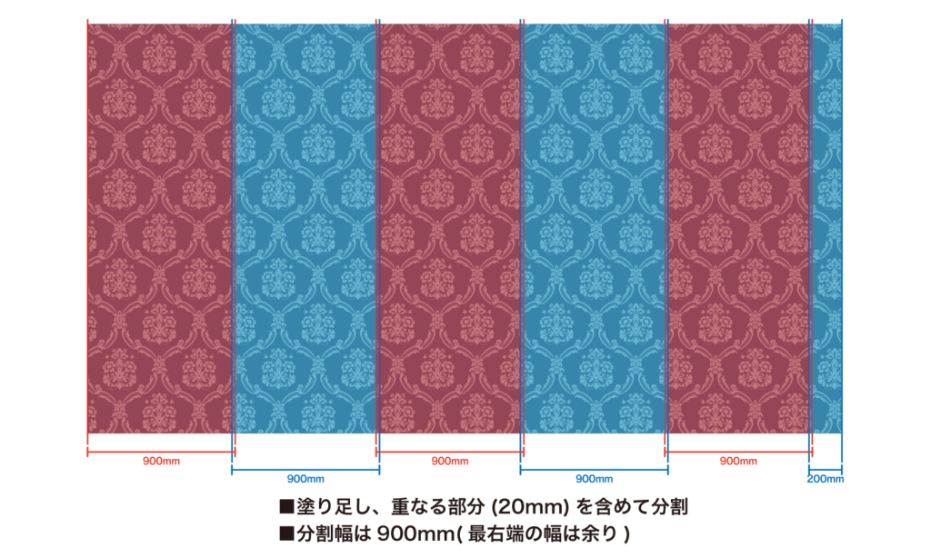 分割方法は『塗り足しを含めた入稿データを900mm幅で分割する』というものです。