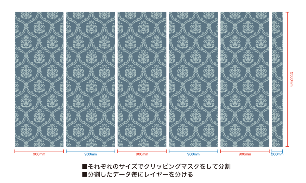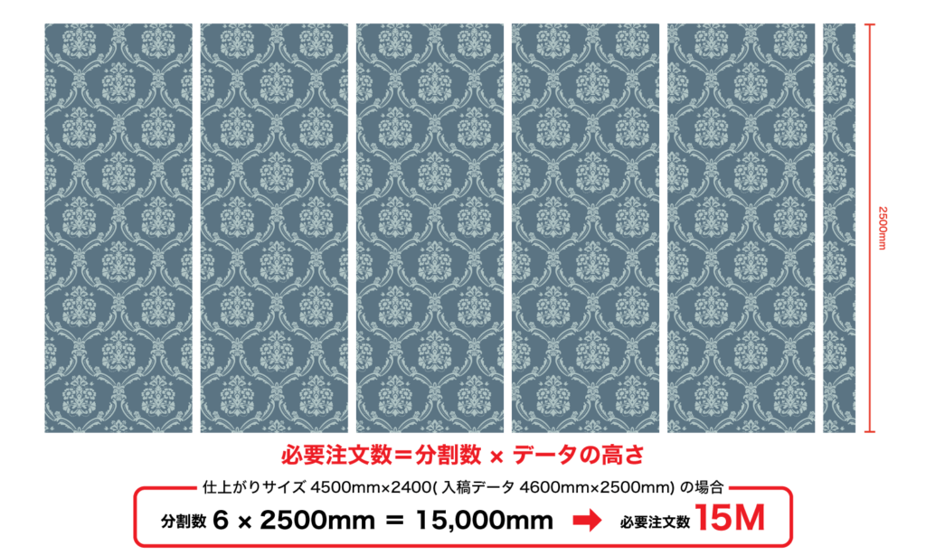 弊社では壁紙の金額は『分割数×データの高さ』で必要な購入メートル数が決まります。