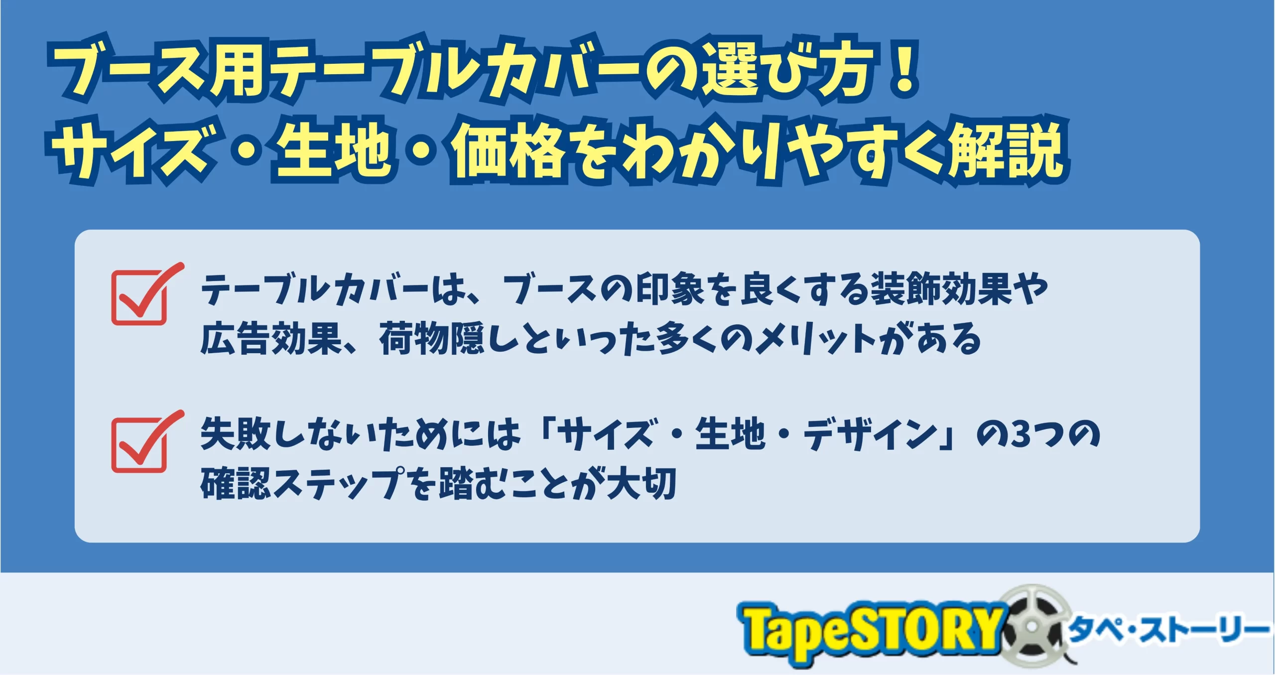 ブース用テーブルカバー選びの3つの基本ステップ!