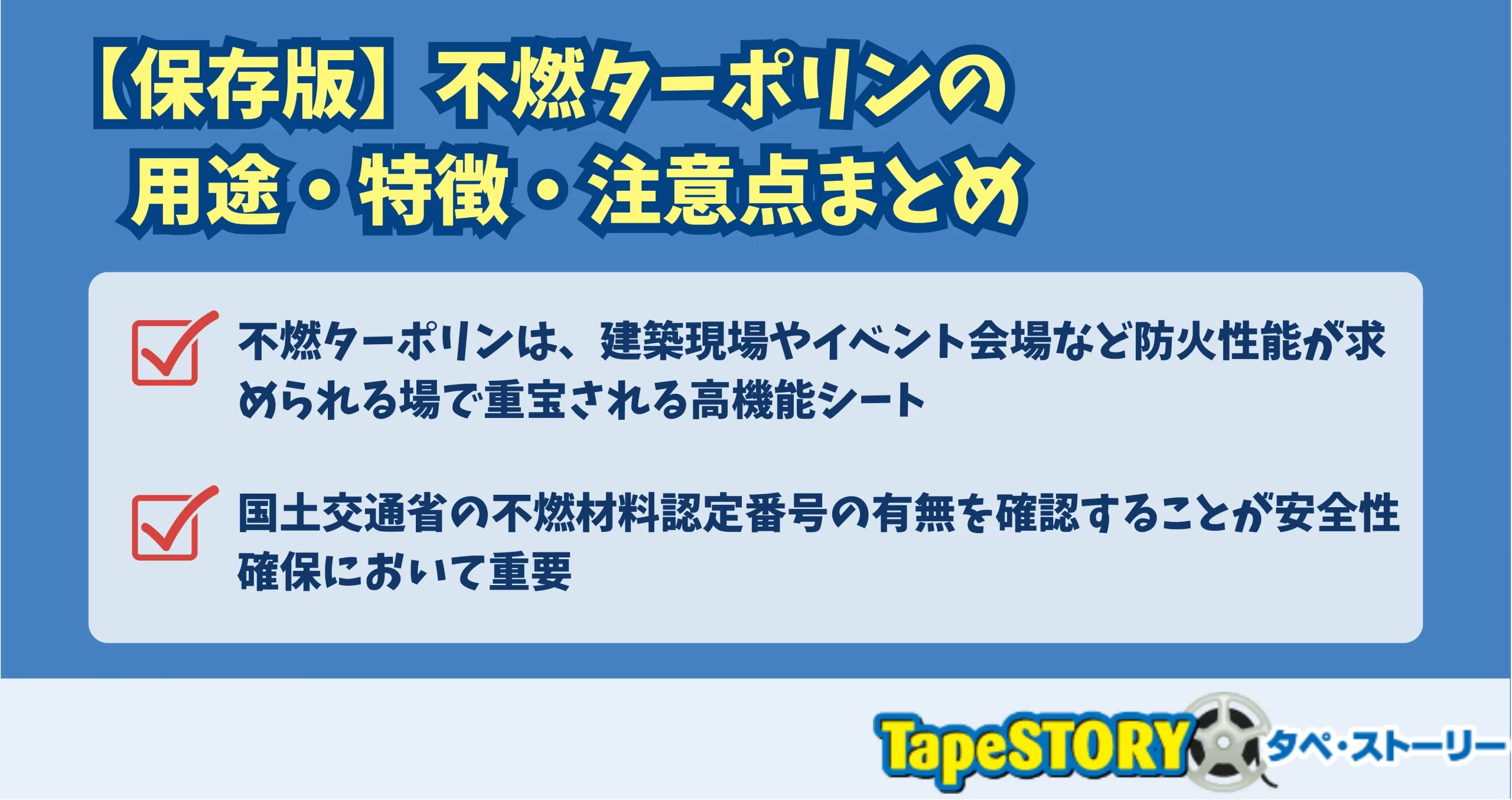 不燃ターポリンは、火に対する高い安全性を持ち、建築現場やイベント会場など防火対策が求められる多くの場面で使用されています。本記事では、不燃ターポリンの定義や防炎製品との違い、用途、特徴、選び方の注意点までを網羅的に解説。不燃認定の基準や「国土交通大臣認定番号」なども詳しく紹介し、用途に適した選定に必要な知識を総まとめしています。