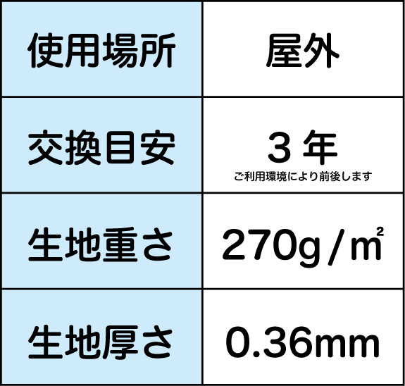 使用用途:風の強い場所/屋外/長期常設/養生幕/懸垂幕/ビル垂れ幕/工事現場シート など