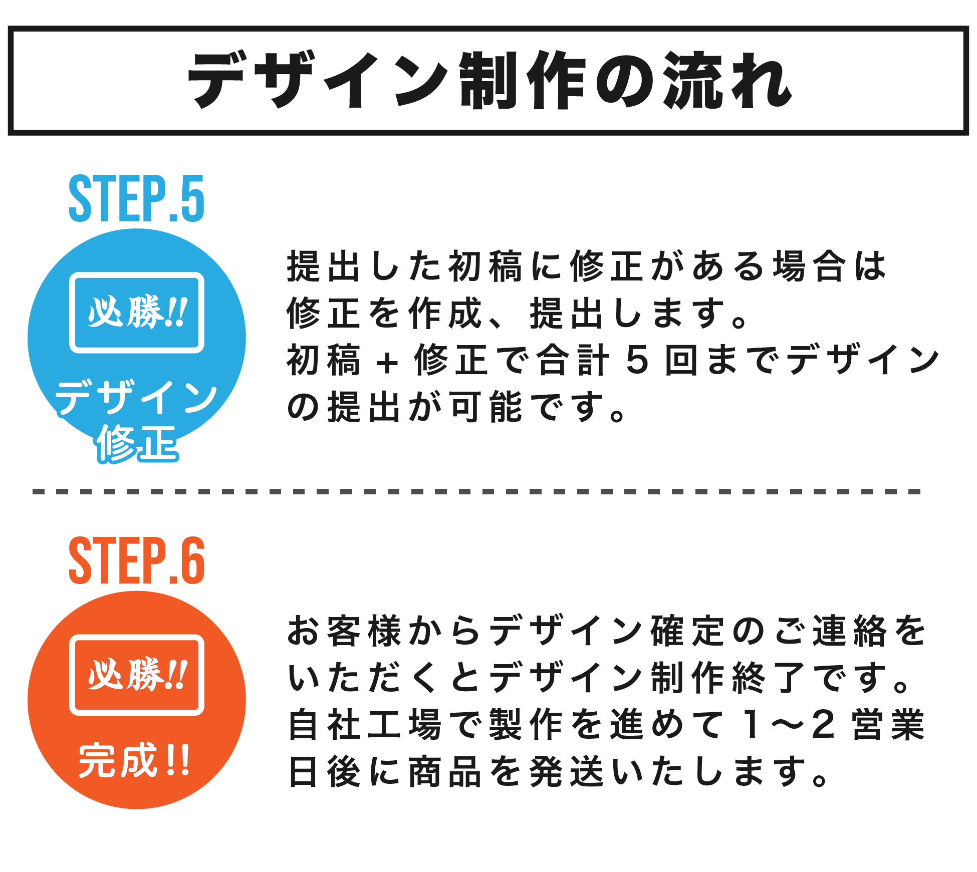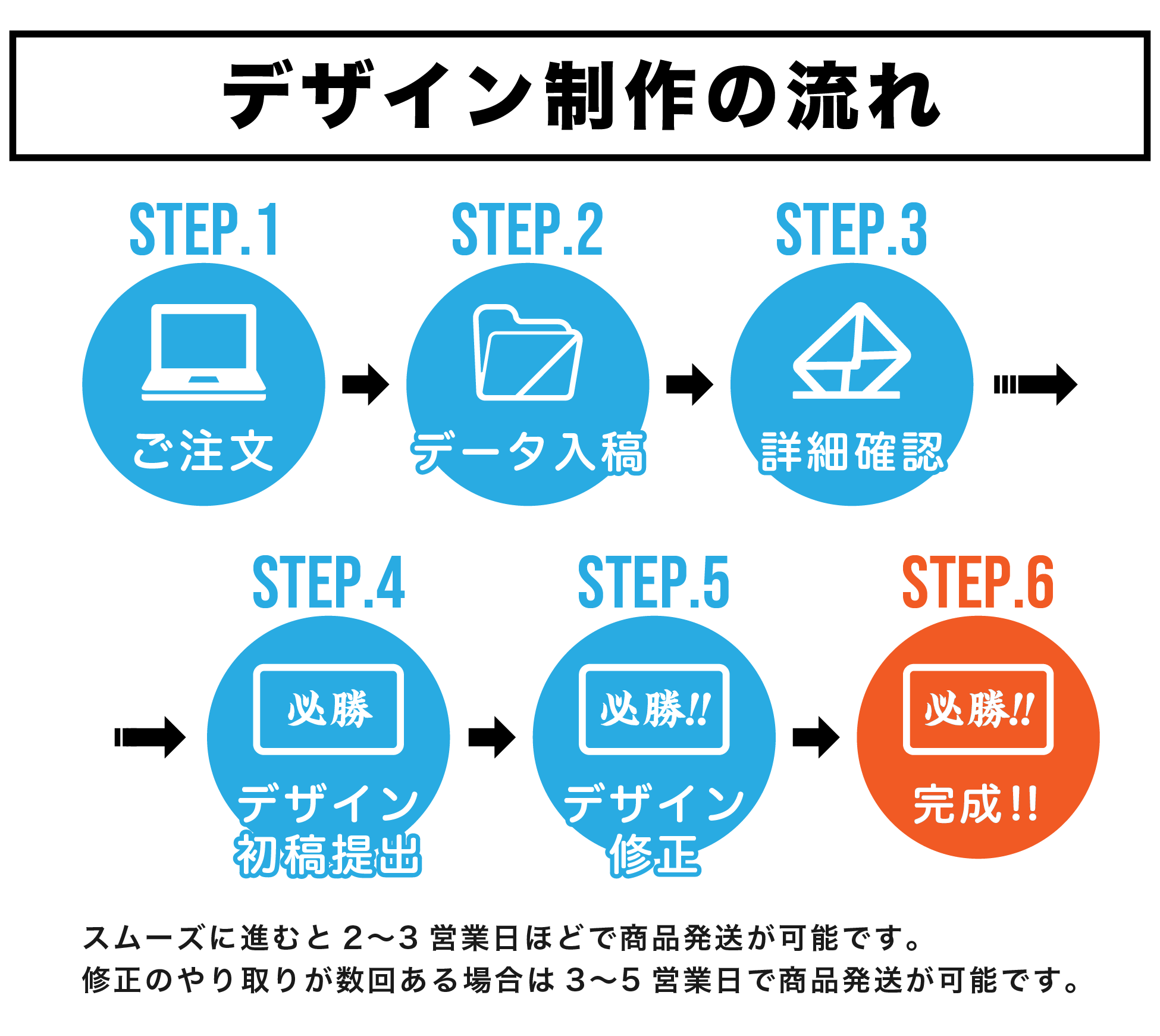 14時までのデザイン確定で、最短翌営業日での発送が可能です。お早めのご注文をお願いします。