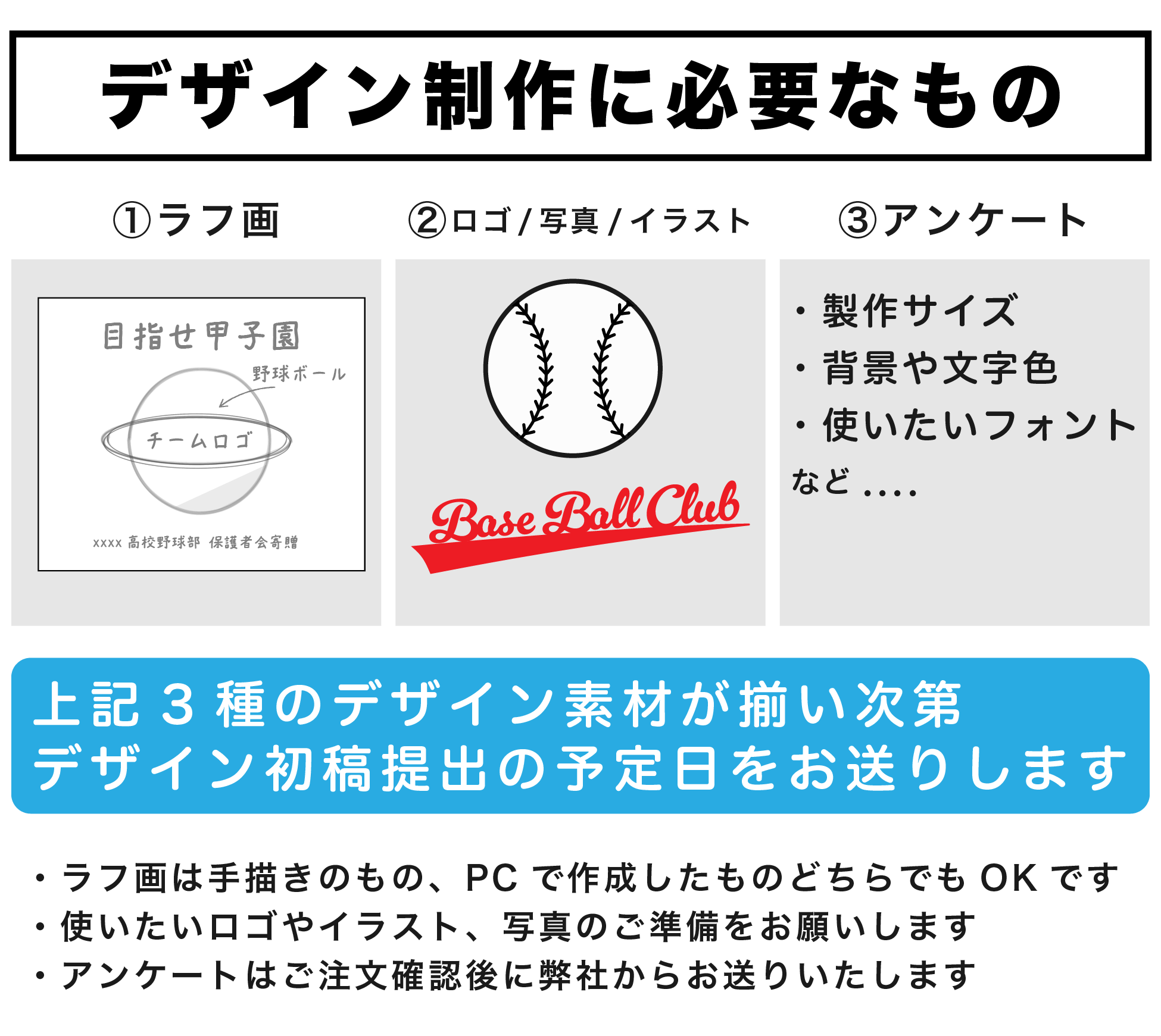 ・ご注文・デザイン制作に必要な素材が全て揃ってからの制作開始となります。